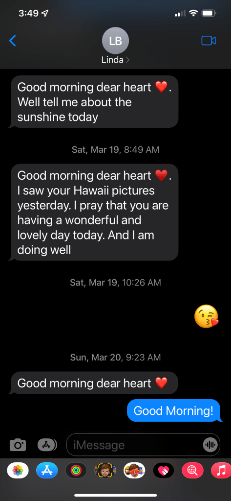 After living with her and seeing/noticing her patterns, I started Googling, TikTok-ing, etc.; to learn more about this disease. I’m passionate about this new knowledge. The crazy thing is there is nothing the same. Yes, the memory is gone. But, not all the way. And it does come back in some moments. Sleeping is difficult. She struggles with that. Therefore, everyone around her struggles with sleeping as well. I have learned that is very common. We will be having a conversation and she will remember people being talked about and then a minute later, she will ask who we were talking about. You learn to just move on with conversation. Which is hard because you want to explain what you were just talking about and for them to remember. But they just don’t. They can’t. But then sometimes she remembers a lot… This disease is just tough.